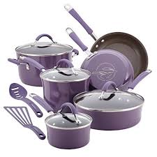 The 12-piece cookware set flaunts double bolted rubber treated tempered steel handles and break safe glass tops; incorporates opened turner and spoon